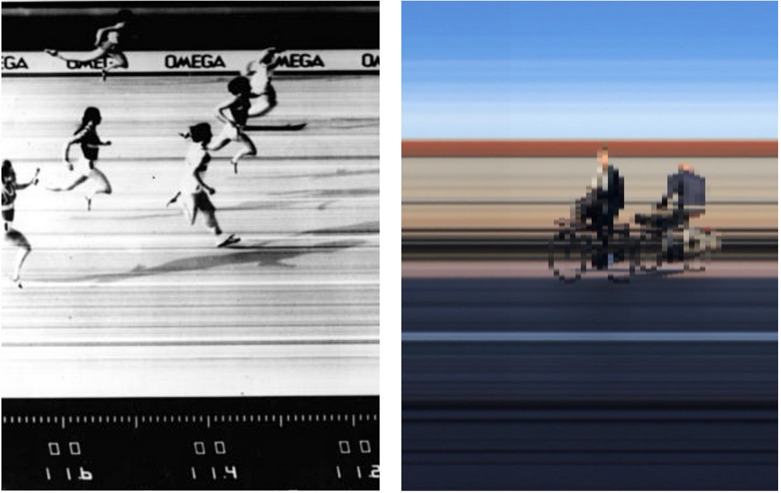 Strip photography was widely employed in the past for capturing photo-finish moments in sporting events. Traditionally, a strip photograph was taken using a custom camera that exposed a rolling film through a narrow and elongated aperture, rather than the typical circular aperture used in conventional cameras.